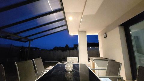 Budapest vonzáskörzetében, Ráckeresztúron 210 m2-es, ÖNÁLLÓ modern családi ház, 538 m2-es, összközműves telken eladó 8 kW-os napelem rendszerrel!