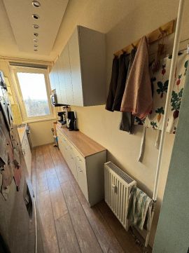 A panelház rendezett, dupla liftes, a lakás a 6. emeleten van. A keleti fekvésű erkélyről a panoráma a Dunára és a Megyeri hídra nyílik.