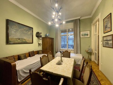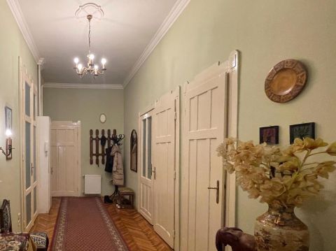 A LAKÁS: A lakásban három nagy méretű, nagy belmagasságú, szoba található, melyek közül 2 utcai, 1 pedig belső udvari fekvésű. Tágas előszoba, fürdőszoba, külön wc, gardrób szoba, kamra, és konyha található, klasszikus, a polgári lakásokra jellemző elrendezésben. Az impozáns terek, az eredeti, de felújított külső és belső nyílászárók ezt a hangulatot tükrözik.