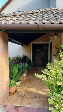 Fedett terasz /szaletli hátul 15m2, főépületen körbe fedett járda.