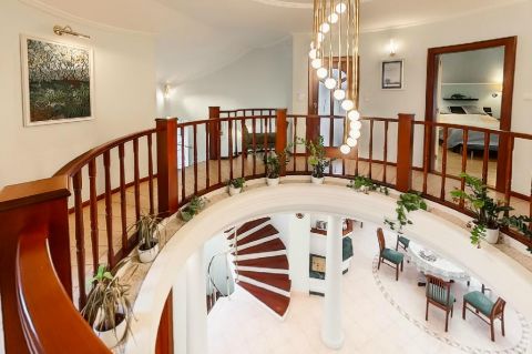 Az ingatlan egyik legmeghatározóbb eleme a földszinten kialakított, közel 5 méteres belmagasságú előszoba, amely már az első pillanatban impozáns, reprezentatív hangulatot teremt. Az emelet galériás kialakítása tovább erősíti a tér nyitottságát és exkluzív karakterét.