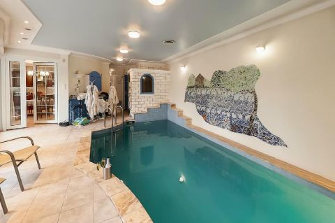 További extrák: kandalló, klíma, riasztórendszer, fűthető medence, zárt medencetér, szauna, biliárd szoba, borospince, automata kapu, öntözőrendszer, Husqvarna robotfűnyíró.