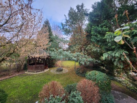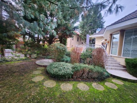 A 870 nm-es, gyönyörűen parkosított, kertész által gondozott telek valódi kertvárosi nyugalmat biztosít, ahol kialakításra került, szaletli, sütögető, öntözőrendszer és Husqvarna robotfűnyíróval felszerelt.