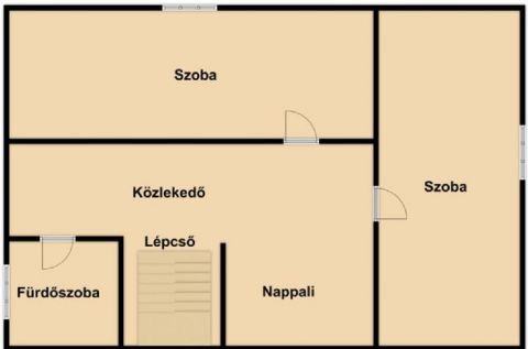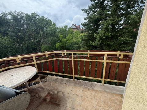Alsó szint: nappali + étkező, konyha, szoba, fél szoba, fürdőszoba, külön WC, két erkély (nappaliból és fél szobából nyíló)