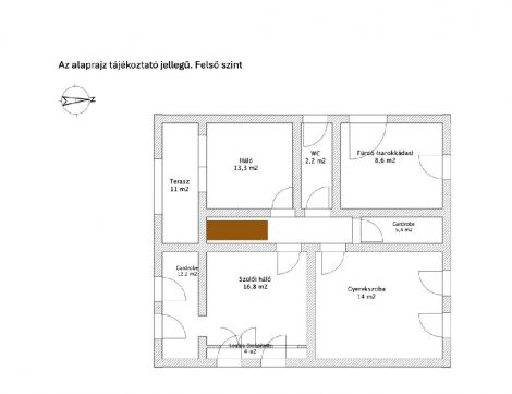 A felső szinten helyezkedik el a szülői háló, amelyhez kapcsolódik egy méretes (12 m2) gardrób, és egy beépített loggia, és további két szoba, egy újabb gardrób, egy sarokkádas fürdő és külön WC, és egy 11 m2-es terasz.