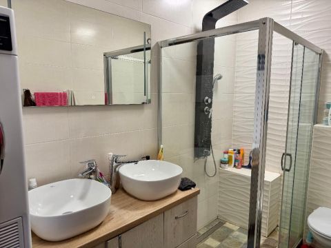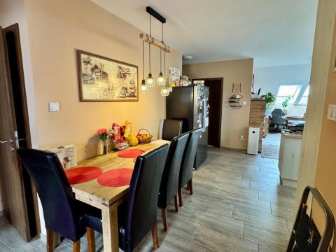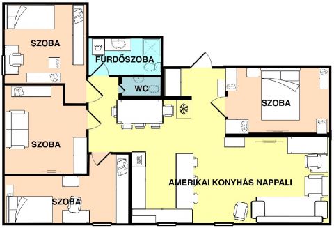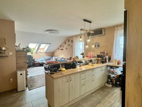 A tetőtéri lakás 81 nm alapterületű és kifejezetten praktikus elosztással rendelkezik. A központi életteret a tágas amerikai konyhás nappali adja, amely mellett négy külön nyíló szoba biztosít privát szférát a család minden tagjának. A reggeli készülődést nagyban megkönnyíti a duplakomfortos kialakítás hiszen a fürdőszoba mellett egy külön vendég toalett is helyet kapott a lakásban. A korszerű műszaki tartalomnak köszönhetően a fenntartási költségek alacsonyak. A fűtést és a melegvíz ellátást gázkazán biztosítja padlófűtéses hőleadással. A kellemes hőmérsékletről nyáron klímaberendezés, az árnyékolásról pedig redőnyök és reluxák gondoskodnak.