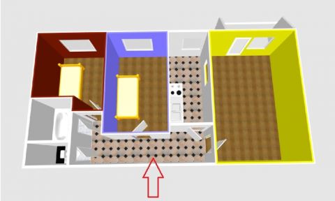 Az ingatlan egyik előnye a praktikus, különnyíló elrendezés: