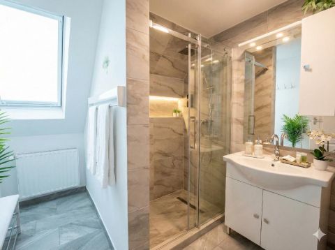 Esztétika: Új laminált padlók, friss festés, minőségi új szaniterek a fürdőkben.