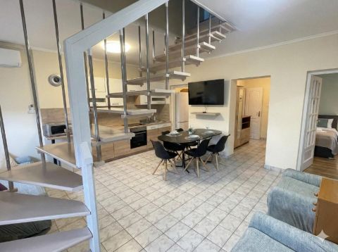 Nyíregyháza forgalmas, jól megközelíthető részén, egy 1000 nm-es telken fekvő, 3 lakásos társasházban található ez a 131 nm-es, belső kétszintes, 5 szobás lakás.