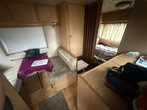 A telken található egy háromszemélyes lakókocsi, amely bojlerrel, tusolóval és előtetővel felszerelt, így akár az építkezés ideje alatt is kényelmes használatot biztosít.