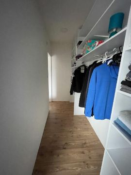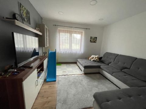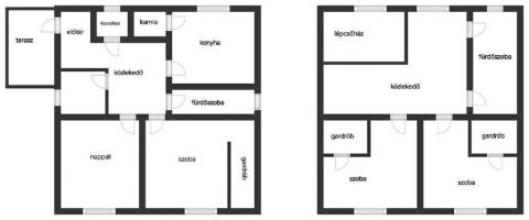 A ház kétszintes. Az alsó szinten egy nappalit, egy nagyméretű hálószobát találunk. A hálóhoz a szoba teljes hosszában gardrób húzódik, mely igazán jó lehetőséget kínál a pakolásra. Itt találjuk még a fürdőt wc-vel és a tágas konyhát is. A konyhához kapcsolódik egy kamra.