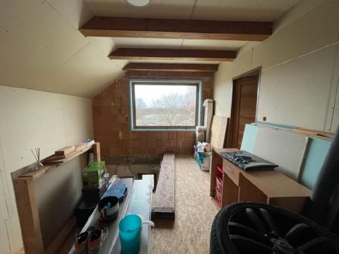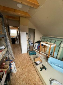 A felsőszint kialakítása az új tulajdonos fantáziájára van bízva. Egy szoba ugyan készen van, de a vizesblokk és a másik szoba még várat magára.