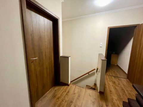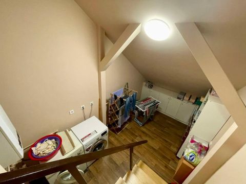 A ház alatt 25 négyzetméteres fűtött garázs és 25 négyzetméteres tároló is található, a lakás innen belső lépcsőn közelíthető meg.