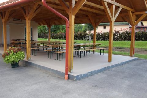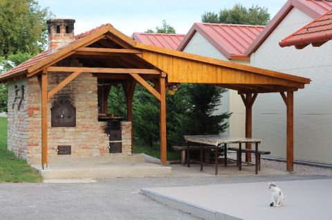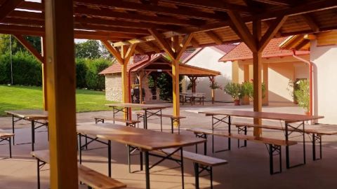 - A rendezett kert és a rengeteg zöld terület nemcsak szemet gyönyörködtető látványt nyújt, hanem kiválóan alkalmas szabadtéri események lebonyolítására is. A rendezvényekhez kapcsolódóan a főépület mellett áll egy kültéri épített kemence főzőhellyel, füstölővel és fedett előkészítő területtel.