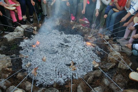 2. A középső 2243 nm-es telken a szigetelt főépület van (128,5 nm; a házhoz kapcsolódik egy 21,5 nm-es és egy 45 nm-es terasz), amelyben a közösségi téren (konyha és étkező / belső foglalkoztató) kívül 3 szoba, 2 vizes blokk (férfi és női) került kialakításra. A nagyobb (45 m2-es) terasz beépíthető, a közösségi tér mérete megnövelhető. (Az építési engedélyes tervek rendelkezésre állnak.) A vizes blokkok egyenként 4 db zuhanyzót és 2 wc-t tartalmaznak. Az egyik szobához tartozik egy plusz fürdőszoba, mely akadálymentesített. A főépület mellett 3 szendvicspanelből készült, egyenként 3 szobás (34 nm-es) épület található, a táborok, képzések résztvevőinek elszállásolására. A 3 épület befogadó kapacitása 30 fő. Az épületek mellett áll egy 37 nm-es tároló (lemezgarázs), mely kiválóan alkalmas a kültéri használati eszközök tárolására, elzárására. Továbbá ezen a területen található a rendezvények egyik központi helyszíne, egy kültéri 'négykenyeres' épített kemence főzőhellyel, füstölővel. A telek felső részén egy épített pince helyezkedik el sok gyümölcsfával, és egy kis játszótérrel, kilátóval.