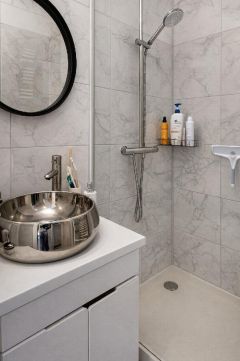 - Praktikus, zuhanyzós fürdőszoba törölközőszárítós radiátorral.