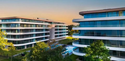Az épület modern, íves vonalvezetésű homlokzata, üvegkorlátos erkélyei és az igényesen kialakított közvetlen környezete valódi üdülőhangulatot teremtenek. A vízparti elhelyezkedés ritka adottság, amely nemcsak életminőségben, hanem értékállóságban is kiemelkedő.
