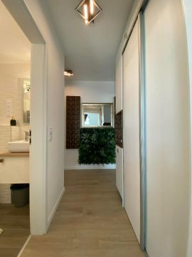 A lakás kialakítása letisztult és jól átgondolt, a nagy üvegfelületeknek köszönhetően egész nap világos, az erkély pedig valódi plusz életteret biztosít. A víz közelsége minden pillanatban érezhető: a teraszról részleges megnyugtató balatoni panoráma tárul elénk, amely tökéletes helyszínt ad reggeli kávézáshoz, esti pihenéshez vagy vendégek fogadásához.