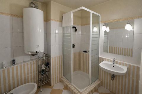 A praktikus elrendezést erősíti a két fürdőszoba az egyik káddal, a másik zuhanyzóval , valamint egy külön WC, gardrób és egy külön háztartási helyiség, amelyek a mindennapi kényelmet szolgálják.