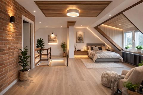 A tetőtérben egy tekintélyes méretű, 19 m2-es szoba található, valamint egy különálló padlástér.