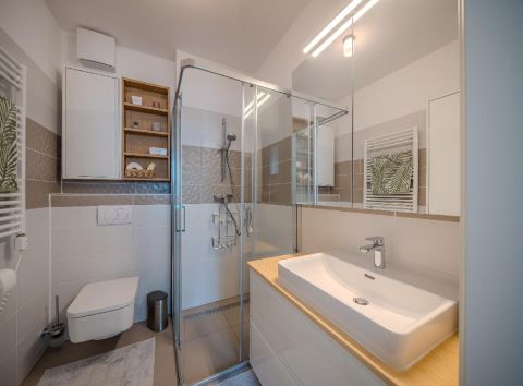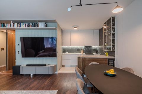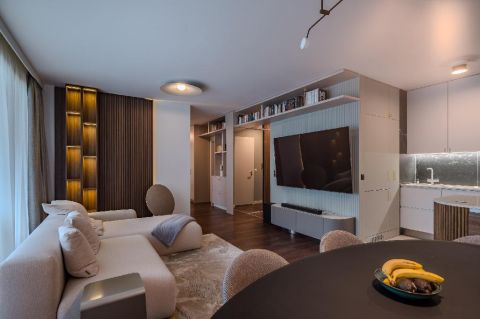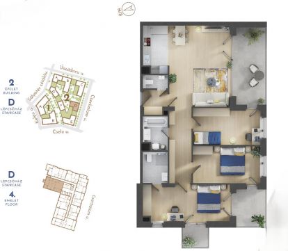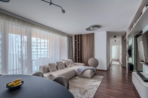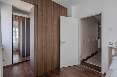 A 94 nm-es, négyszobás lakás elrendezése átgondolt és harmonikus: a tágas közösségi terek mellett jól elkülönülő privát szobák biztosítják a kényelmes mindennapokat. A lakás egyik kiemelt értéke a master bedroom, amely valódi privát lakosztályként működik: különálló, beépített gardróbszoba és saját fürdőszoba tartozik hozzá, így maximális kényelmet és intimitást biztosít a tulajdonos számára.