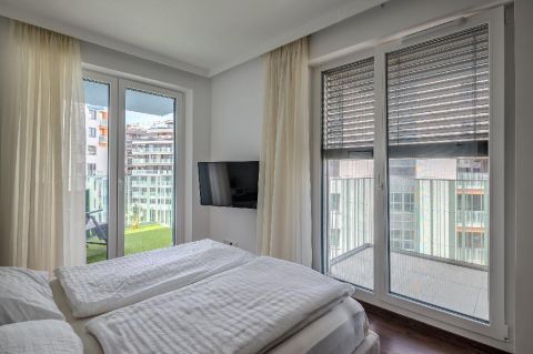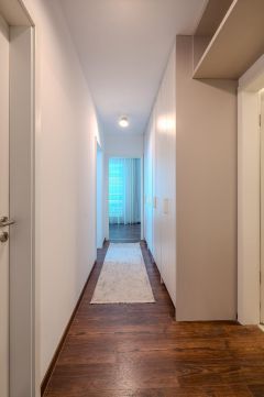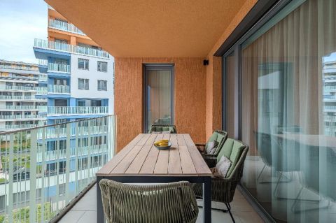 A 4. emeleten elhelyezkedő lakás a belső, parkosított udvarra néz, így a Marina Part pezsgő környezetében is csendes és intim életteret biztosít. A délnyugati tájolás gondoskodik a napfényes terekről, míg a három különálló erkély elegáns szabadtéri életteret teremt ideális reggeli kávéhoz, esti borozáshoz vagy egy nyugodt pihenéshez.