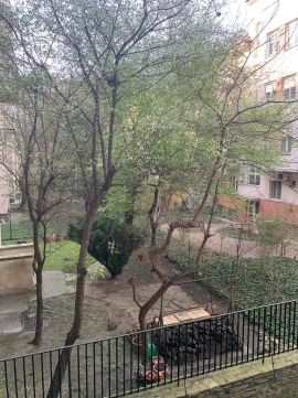 Az ingatlan egy jó állapotú, liftes, kamerarendszerrel felszerelt, 5 emeletes téglaépítésű társasház 1. emeletén található (épült az 1950-es években).