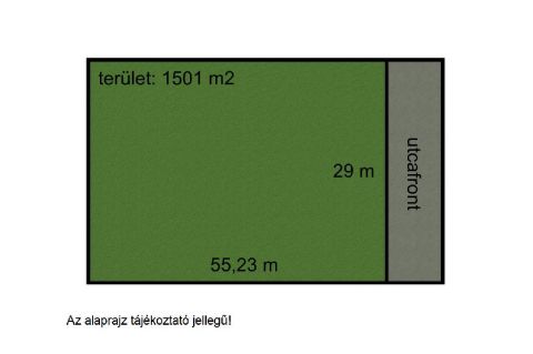 A telek mérete ideális: 29 méter széles és 55 méter hosszú, így számos beépítési lehetőséget kínál. Jelenlegi beépítettsége 5,86 %, ami további bővítési vagy építési lehetőséget biztosít.