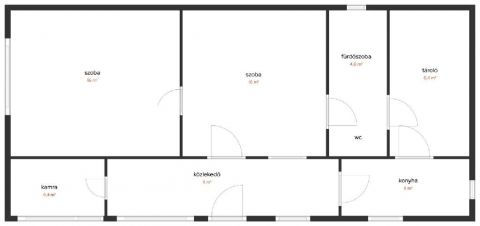 A ház 64 m2, a telek mérete 960 m2.