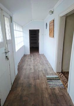 A ház parasztház jellegű. Hosszú, világos tornácról lépünk be az egyik szobába, melyből balra nyílik a másik szoba, jobbra pedig a fürdőszoba wc-vel, és egy tárolóhelyiség található. A konyha a tornác egyik végén, a kamra a másik végén helyezkedik el.