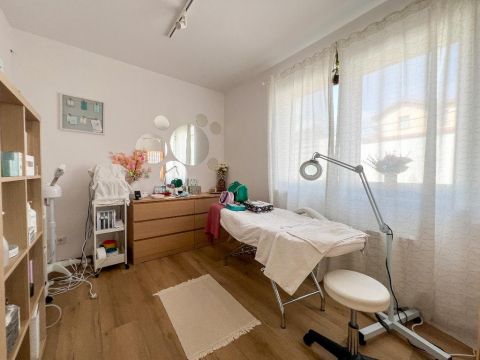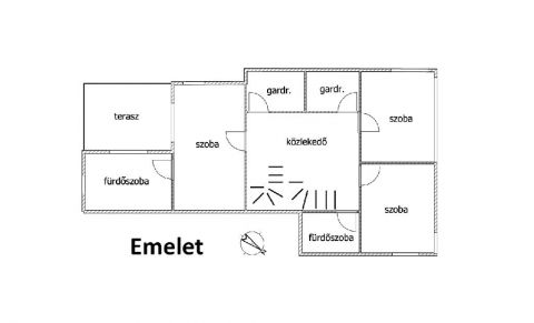 Az emeleti elrendezés ideális egy 2-3 gyermekes családnak: 3 külön hálószoba, 2 fürdőszoba és 2 gardrób biztosítja, hogy reggelente ne legyen sorban állás, és mindenki kényelmesen elférjen. A külön dolgozószoba pedig tökéletes otthoni munkára vagy akár vállalkozás működtetésére is ? jelenleg is egy szépségszalon működik benne.