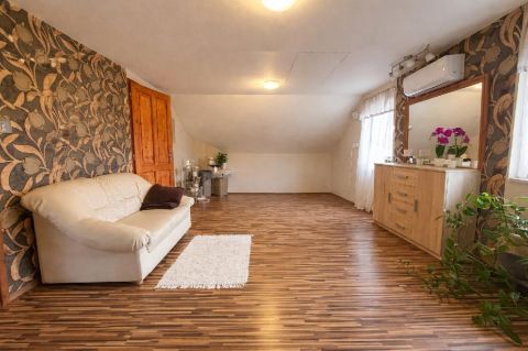 A ház elosztása kifejezetten kedvező: összesen 8 szoba és 1 félszoba található benne, két tágas nappalival (34 nm és 53,5 nm), több 15-25 nm közötti hálószobával, két fürdőszobával, konyhával, mosókonyhával, gardróbbal, valamint több tárolóhelyiséggel, köztük egy külön bejáratú, 23 nm-es pincével. Az egyik helyiség, ami jelenleg szobaként funkciónál, kisebb átalakítás után garázsként is hasznosítható. A háromszintes kialakítás és a nagy alapterület lehetővé teszi akár több generáció együttélését, de irodai vagy rendelői funkció kialakítására is alkalmas lehet, jelenleg sport és masszőri és egyéb szépségipari vállalkozások bérlik, így bérlőkkel együtt tovább hasznosítható az ingatlan!