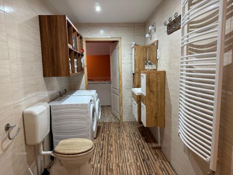A fűtésről gáz-cirkó rendszer gondoskodik, a komfortfokozat összkomfortos. A fürdőben és a konyhában padlófűtés lett kialakítva. A villany, víz és fűtés rendszer korszerűsítve lett. Az udvaron 40 m2-es garázsban vagy több autó számára kavicsos nyílt kocsibeálló áll rendelkezésre az autóknak. Tovább egy 40 m2-es térkövezett rész áll rendelkezésre, jelenleg medence van rajta. A nyári estéket tovább fokozva, egy kerti sütögető is megtalálható az udvarban. A telek szélessége 35 méter, amely számos lehetőséget kínál kert kialakítására vagy akár további fejlesztésekre is. A kerítés szerkezete új, színezést igényel. A tetőszerkezet felújításra szorul, pala héjazattal borított jelenleg.
