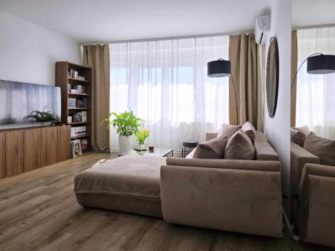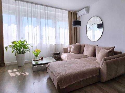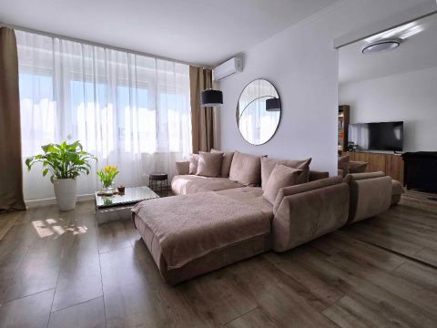 A tízemeletes, liftes ház hetedik emeletén található ingatlan kifejezetten világos és napfényes. Az elosztása rendkívül praktikus, a rendelkezésre álló térben két szoba, egy konyha, egy fürdő és egy külön mellékhelyiség kapott helyet. A beépített gardróbszekrényeknek köszönhetően rengeteg teret spórolhatsz, így jóval kevesebb bútorra lesz szükséged a költözésnél, a ritkábban használt dolgokat pedig kényelmesen elrejtheted a lakáshoz tartozó külső tárolóban.