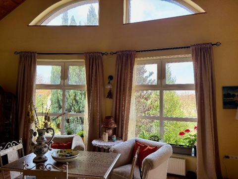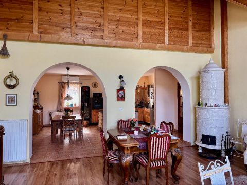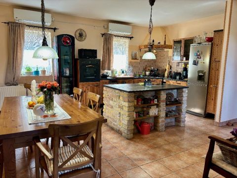 A szellős, tágas terekkel, nagy ablakokkal és barokk cserépkályhával rendelkező ház 289 négyzetméter alapterületű. Az ingatlan nem rendelkezik csatornabekötéssel, a szennyvízelvezetés emésztővel megoldott. A telken fedett, zárt parkolóhely található, amely akár négy autó befogadására is alkalmas. A kert szépen karbantartott: egy része parkosított sziklakert, az udvar másik oldalán levendulasorok találhatók. A kertben medence és ápolt teraszok biztosítják a nyugodt kikapcsolódást. A házban vízlágyító rendszert telepítettek, a kertben pedig a csövek elő vannak készítve egy úszómedence kialakításához.