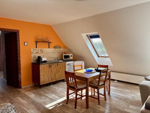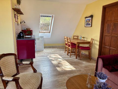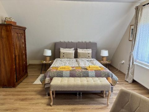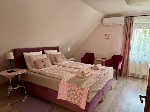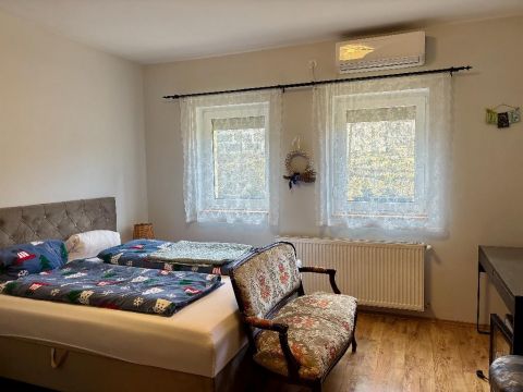 A 289 négyzetméteres házban négy önálló, fürdőszobával ellátott lakrész található. Alul az egyikben a szülők, a másikban a gyerekek élnek. Az emeleten a család 14 éve két darab kétszobás, légkondicionálóval felszerelt apartmant ad ki az Etyekre érkező rövid távú szállóvendégeknek. A bejáratott szálláshely 9,7 pontos értékeléssel rendelkezik, és a tulajdonosoknak biztos megélhetést nyújt. Aki vételi szándékkal érkezik, de nem szeretne itt élni, az azonnal négy apartmant tud kiadni.