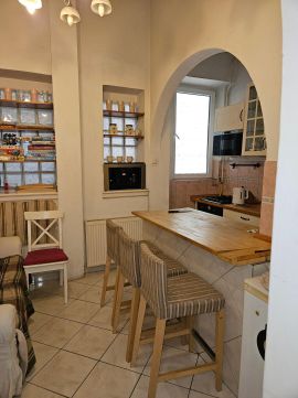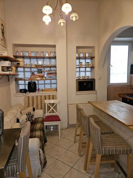 Nagy tágas szoba, kényelmes méretű fürdőszoba, és egy nagyon otthonos étkezős konyha is része az ingatlannak, ami akár egy plusz nappalit is helyettesíthet elhelyezkedése és kialakítása miatt.