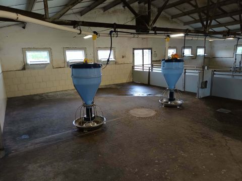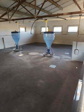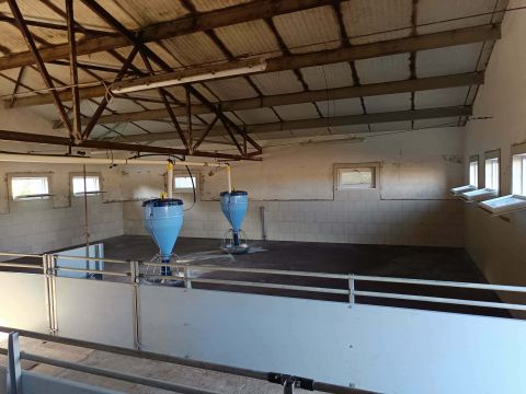 Épületek: Komplett lakóház (2 szoba, 2 fürdőszoba, 2 konyha, kamra, 3 tároló) + sertéshizlalda ( 100 db sertés hizlalására alkalmas, + 3 db terménytároló, tárolóhelyiségek, trágyatároló)
