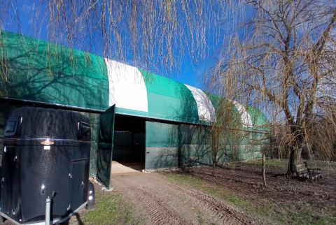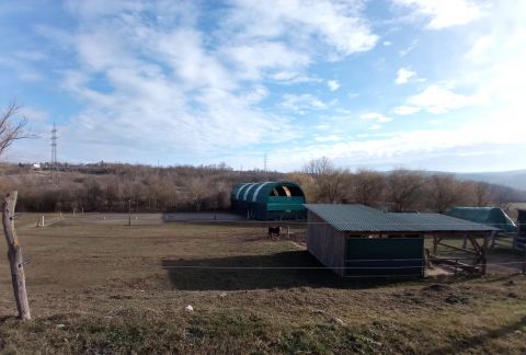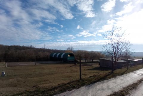 Az ingatlan jelenlenleg lovas ranch-ként működik, villanypásztorral körbekerített. Lakás céljára praktikusan kialakított mobilház, fedeles pálya, lóbeállók, karámok, körkarám, két állásos kocsi beálló felépítmények találhatók rajta. A vizet, fúrt kút biztosítja. Elektromos áram van, 3 x 32 Amper biztosított. Az épületben vegyestüzelésű kazánnal, a központi fűtés ki van építve.