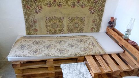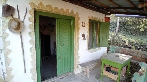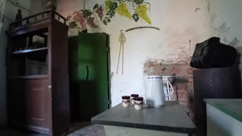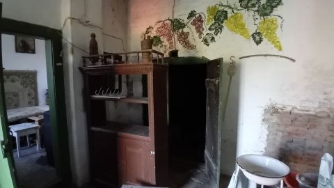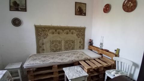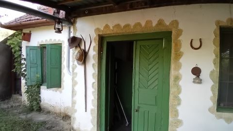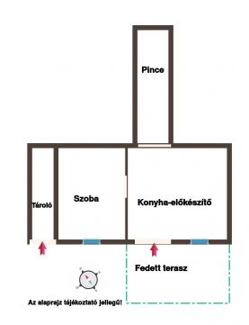 A présházba a fedett teraszról tudunk belépni, ahol a konyha - előkészítő lett kialakítva, innen nyílik balra a szoba, szembe pedig a téglaboltozatos pince.
