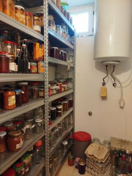 Jelenleg 4 db cserépkályhával megoldott, de gáztartályos fűtés is ki van építve, de jelenleg tartály nélkül.