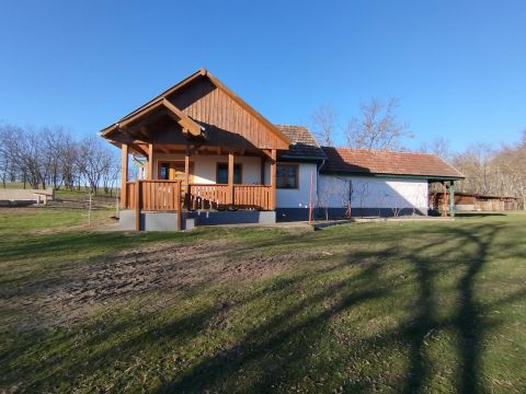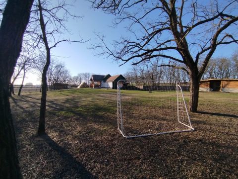 Lakóingatlan (dupla ikerház) fűthető kültéri medencével + vendégház + működő víziszárnyas telep 4 hodállyal és szolgálati lakással + külön helyrajzi számon nyilvántartott szarvasmarha-telep.
