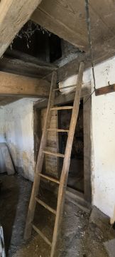 A bazaltkőből épült ház 105 nm területtel rendelkezik, a gazdasági épületek hagyományos 3 felosztásával..
