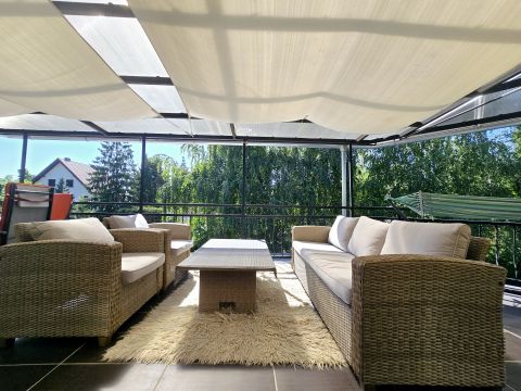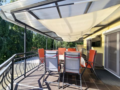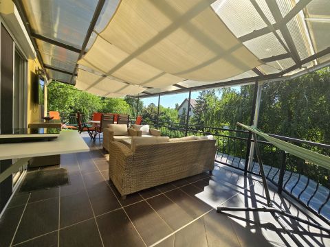 A 44 m²-es fedett terasz a nyári élet színtere –itt élvezheti a szabad levegőt esőben, napsütésben egyaránt.