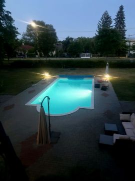 Saját kültéri medence a gondozott kertben – tökéletes a nyári felfrissüléshez.