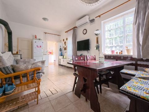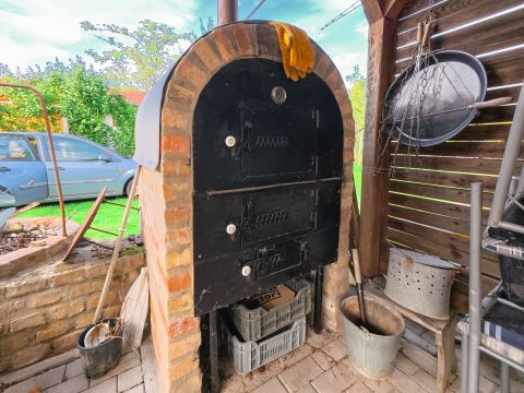 A ház két hálószobája és tágas nappali étkezője rengeteg lehetőséget kínál a pihenésre és a közös pillanatokra. Egy jól kihasználható, fúrt kút biztosítja a vízellátást, nem csak a kertben, hanem akár az egész ház számára. De természetesen van vezetékes víz a házban, így nem kell aggódni a víz miatt, akár kertészkedéshez vagy kinti játékokhoz is. Két fedett terasz várja a vendégeket: az egyik ideális reggeli kávézásokhoz és kiülős beszélgetésekhez, a másik pedig a családi és baráti összejövetelek színhelye lehet, kemencével és sütögetőhellyel, ahol a nyár minden pillanata különleges lesz.