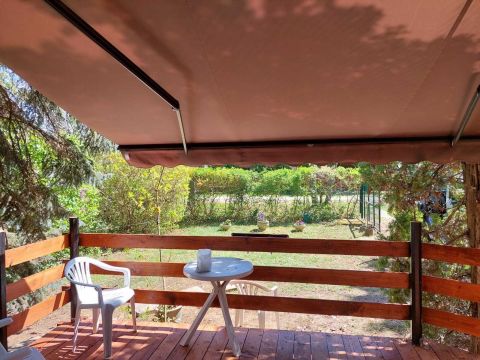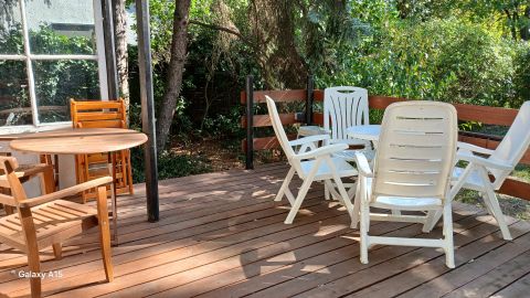 Mindezt családja, barátai körében de akár egyedül is, ahogy éppen jól esik. A nagy részben fedett terasz egy napellenzővel van kiegészítve.