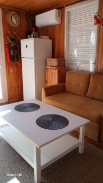 A nappaliban hűtő-fűtő klima, a kis fürdőszobában elektromos fali radiátor biztositja a megfelelő hőmérsékletet. A nyaraló duplán lett szigetelve és