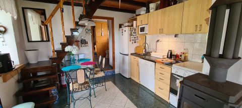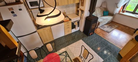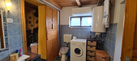 A téglalap alakú telek közepén helyezkedik el az épület, és csak egy közeli szomszédja van. Az alsó szinten találunk egy konyha-étkező-nappalit, egy fürdőszobát, és egy hálószobát, mely közvetlen terasz kapcsolatos, míg a tetőtérben egy-légterű szoba lett kialakítva. A 15nm-es borospince a nappali alatt húzódik, külső bejáraton át közelíthető meg. Az ingatlan víz, villany közművekkel rendelkezik, meleg víz ellátását villany bojler adja, melyre a napelem is rásegít, ha szükséges.