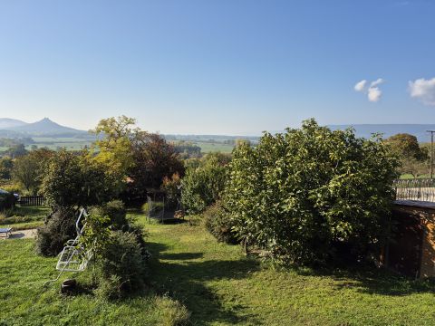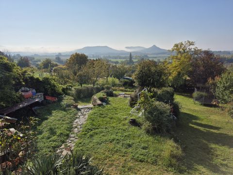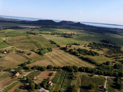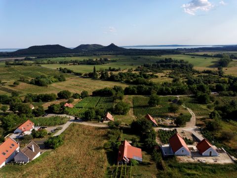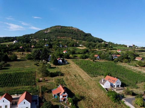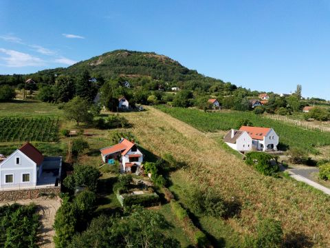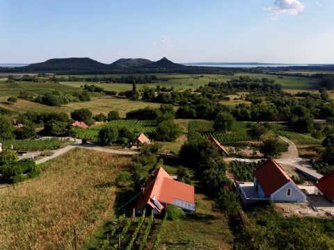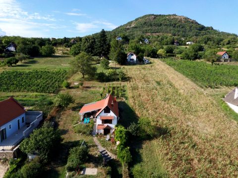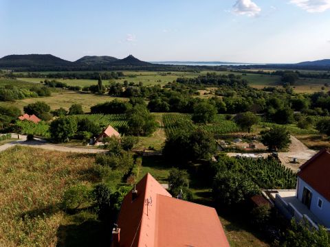 A kertben gyümölcsfák, egy hatalmas cseresznyefa, füge és pár sor szőlő is található, minden pontjáról lélegzetelállító tanúhegyes, és balatoni örök panorámában gyönyörködhetünk!